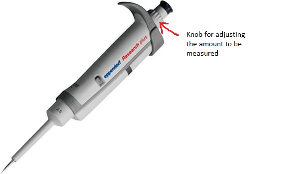- Now press the button to first stop (this expels the air). Put the tip in the DNA sample and draw out the required amount by releasing the button.